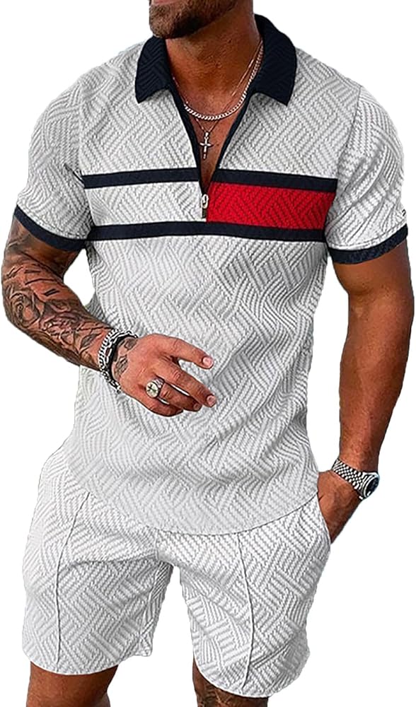 MODERN STYLE: Casual men's 2 piece short set stylish design,great for all summer can be worn for jogging or leisure all day long for a casual daily look