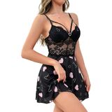 • Design: The babydoll lingerie dress features a lace patchwork, deep V neck, cute heart lock decors, contrast lace under bust, hollow out, backless, mini length sleepwear dress. This nightdress shows off curves and makes you sexy, elegant and attractive.