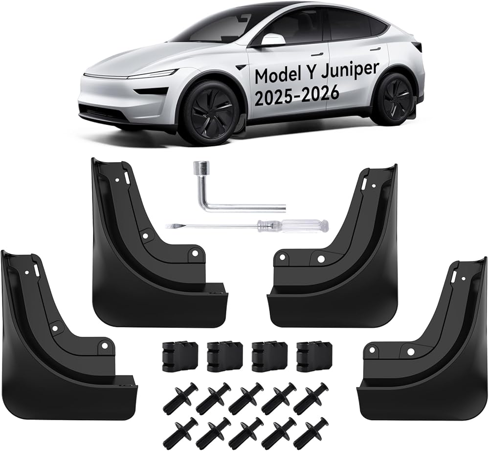 1 A must-have accessory for Tesla Model Y Juniper(2025 2026), OZPYKAE mud flaps are designed to block mud, stones, and debris. They protect your paintwork, help extend the lifespan of your paint and body, and contribute to maintaining your vehicle's range.
