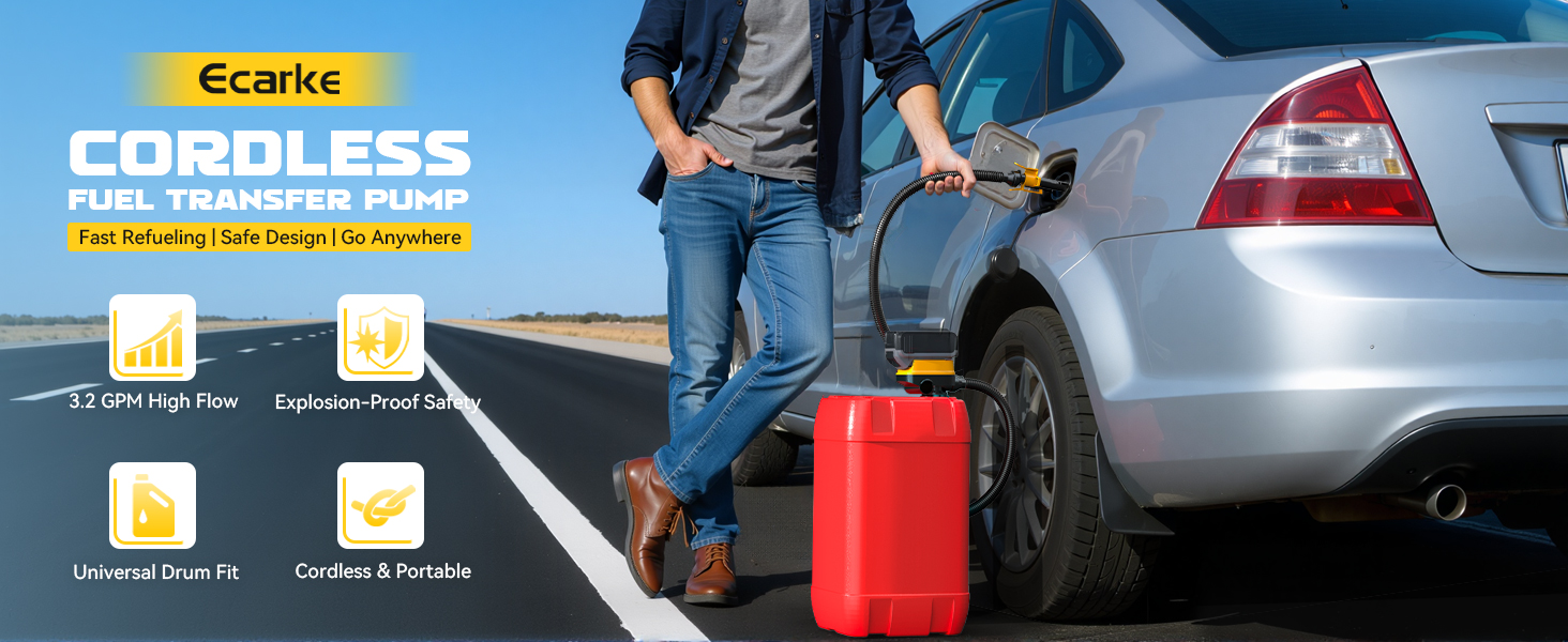 Ecarke Auto Shut-Off 3.2GPM Cordless Fuel Transfer Pump, Compatible with DeWalt 20V Milwaukee 18V Battery, Leak-Proof Electric Pump for Gasoline Diesel to Car Truck Boat (Without Battery)