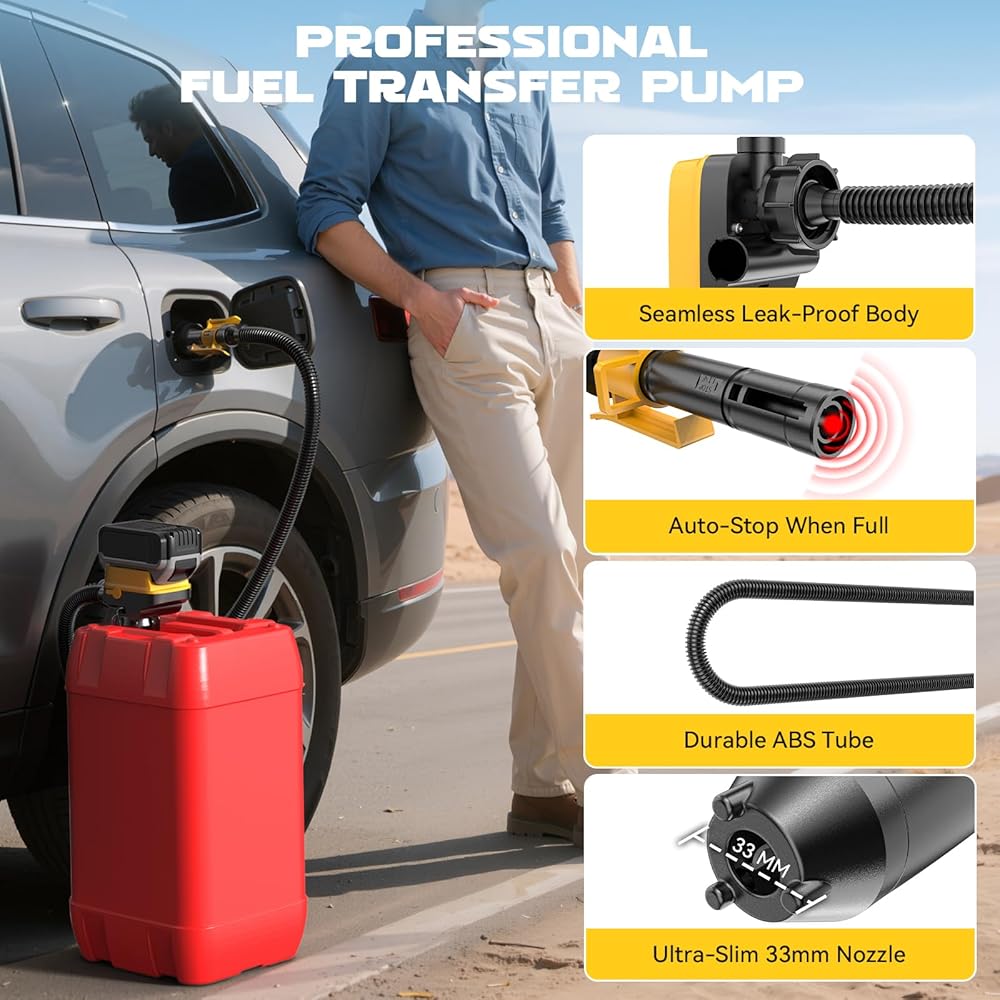 SMART AUTO SHUT-OFF, TRUE ONE-HANDED OPERATION: With an intelligent auto shut-off sensor, the pump starts and stops automatically—no manual switch required—for smooth, one-handed fuel transfer. The slim 33 mm (1.3 inch) nozzle fits tanks on cars, motorcycles, tractors, mowers, and generators, making it a practical tool for car enthusiasts, farmers, and gardeners