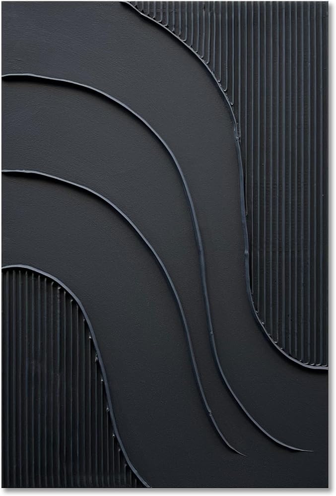 NANKAI Hand-Painted Thick Texture Black Minimalist Oil Painting 24x36 Inch Texture Abstract Painting Home wall Decorative Art
