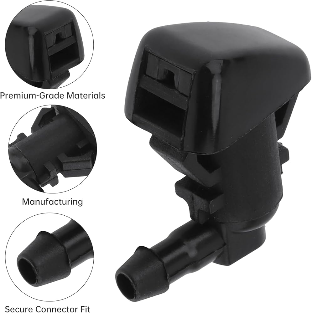 Product Function: This washer nozzle kit distributes cleaning fluid across the vehicle's windshield. It supports wide fluid coverage for windshield cleaning and visibility maintenance.