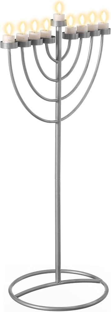 Let the light of Hanukkah illuminate your synagogue or home with this modern 9 branch Hanukkah menorah, This menorah is composed out of durable metal material. It will make a great addition to your Hanukkah celebrations.