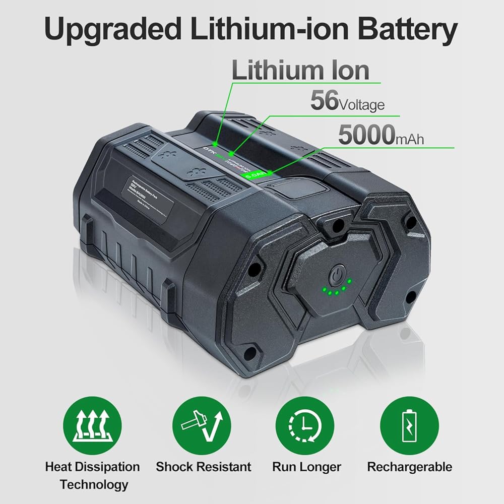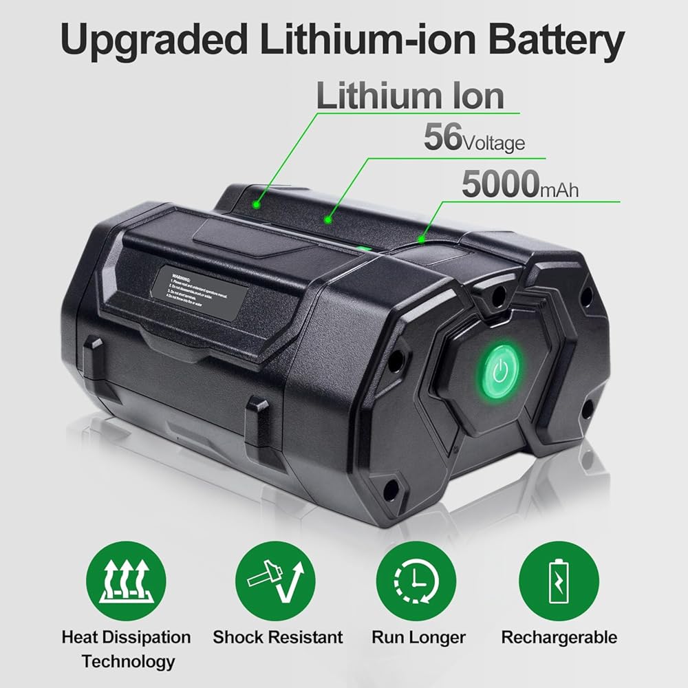【Safety & Durablity】- Our 56v batteries approved CE FCC ROHS and MSDS certified, Built-in smart chip can over-charge protection, over-heating protection, short-circuit protection, over-current protection, overvoltage protection, avoid excessive use and improve tools working life