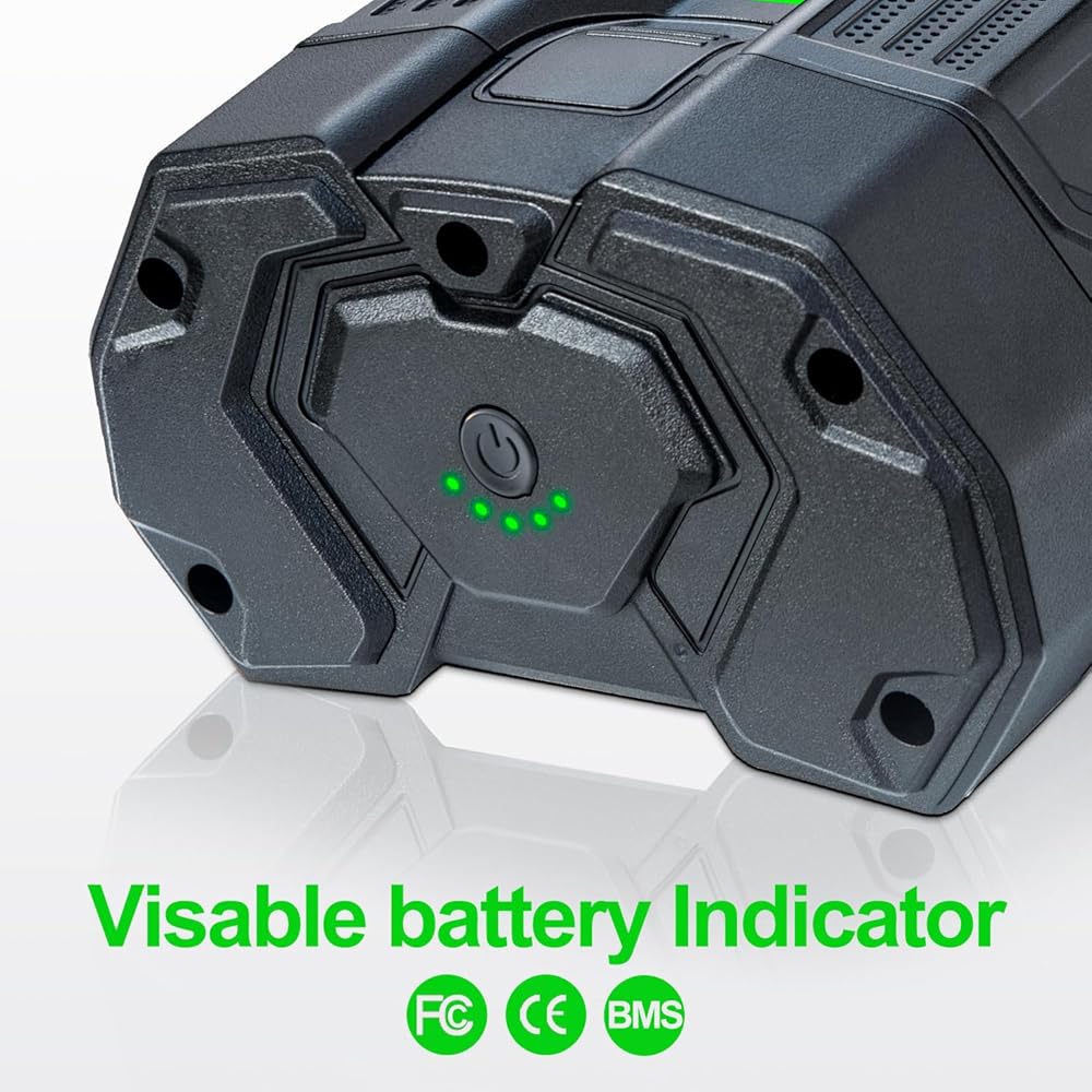 【High Performance】- 5.0Ah battery replacement for EGO is powerful and can work long lasting time, even in the most extreme conditions, 5.0 Ah battery 2x long run time than other 2.5Ah battery, it have smart led indicators to show the batterty charging and using situation