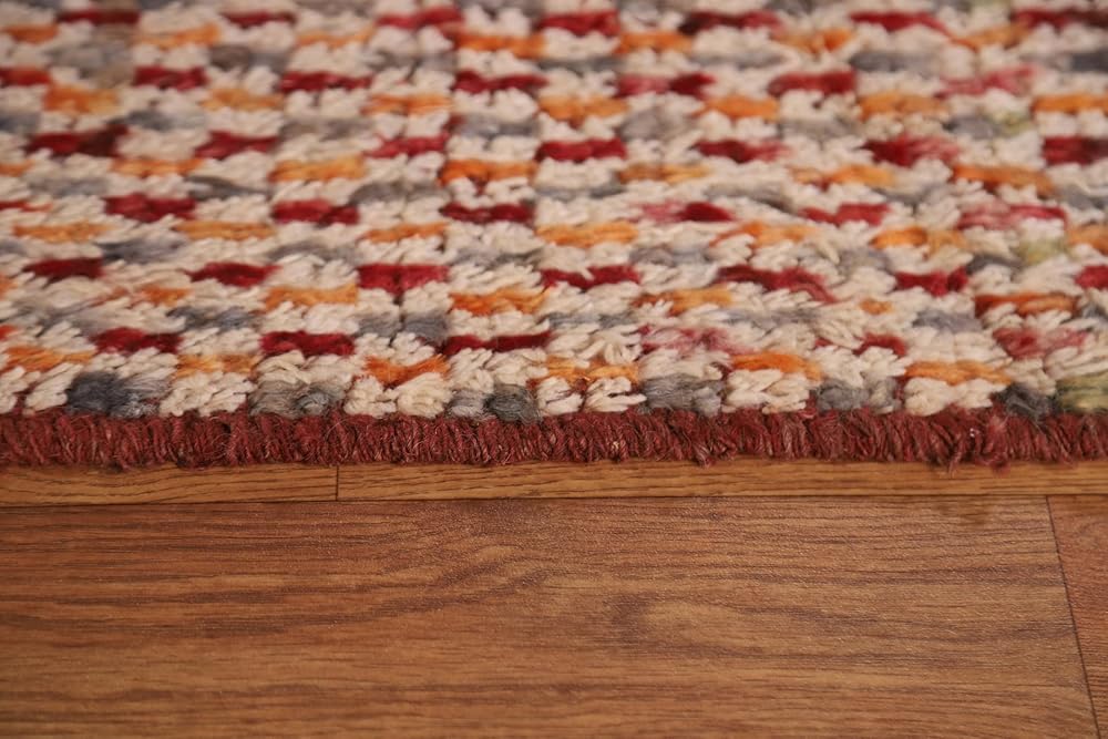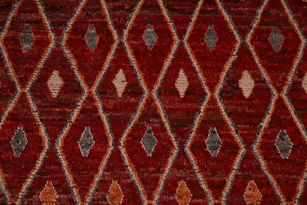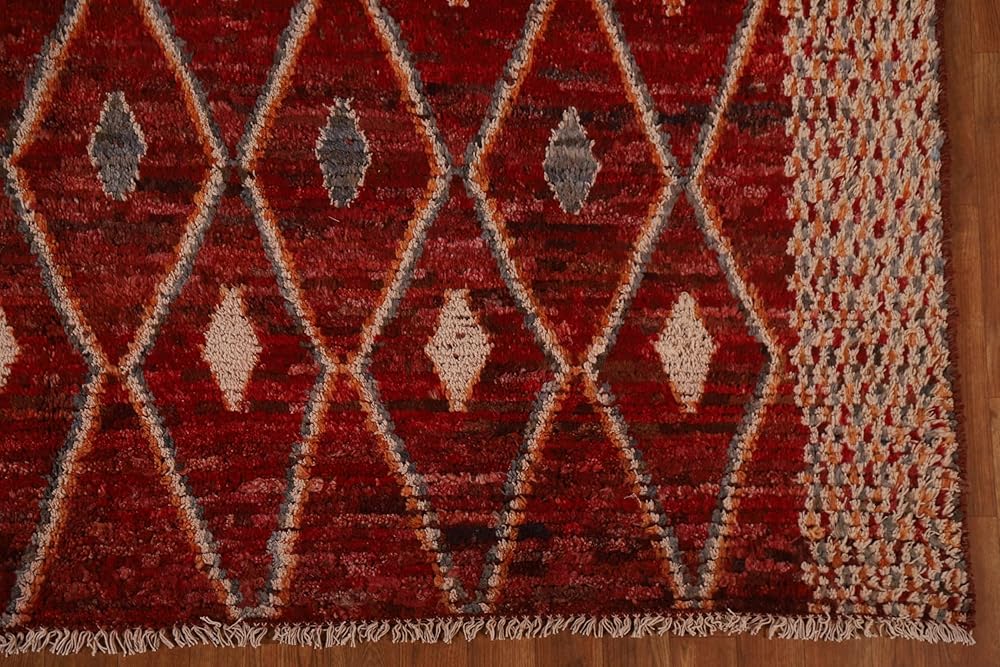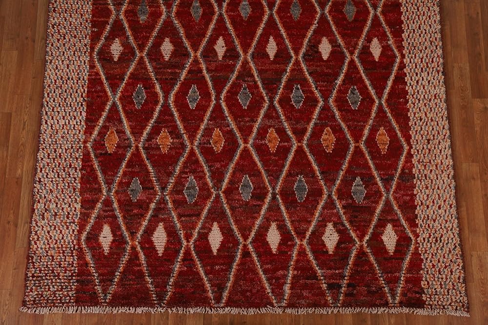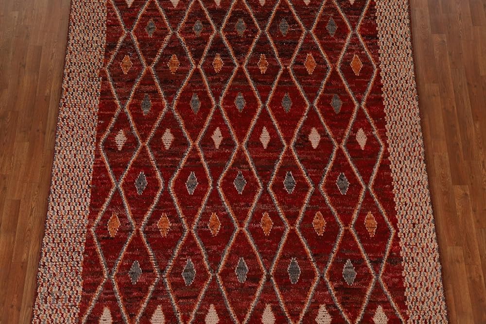 Rug Source Modern Collection 7x9 Area Rug, Hand Knotted Red Geometric Rug, Oriental 100% Wool Carpet for Bedroom, Living Room, Dining Room