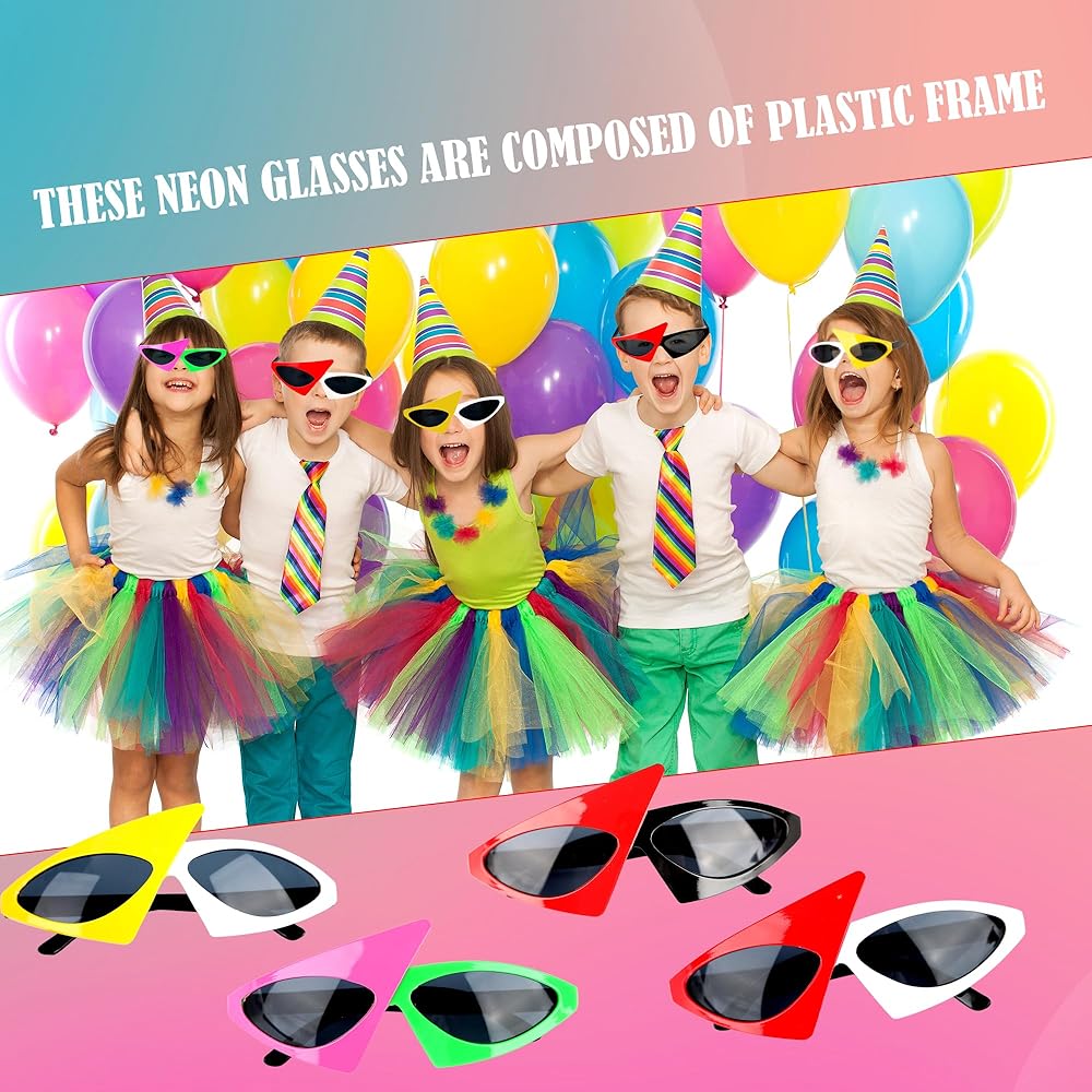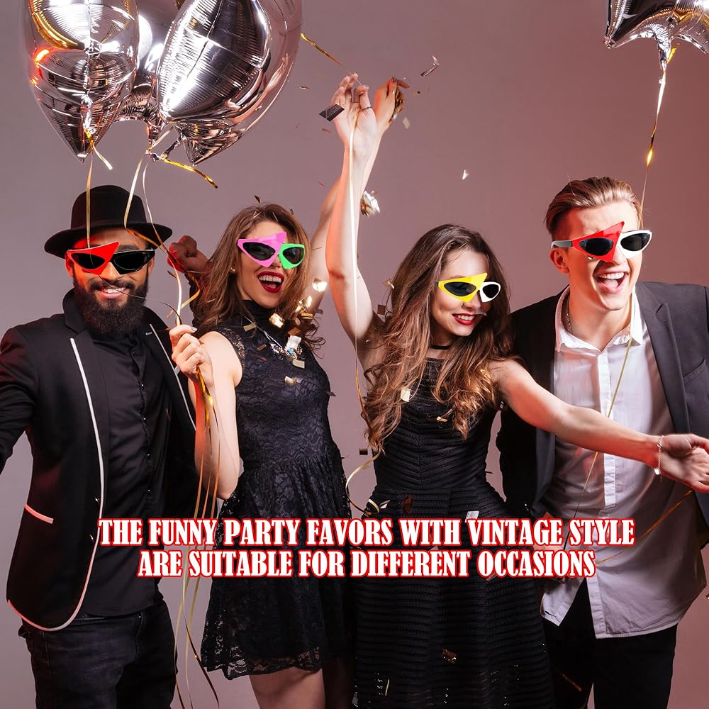 • Wide application: these 80s sunglasses for men are perfect for birthday parties, music festivals, raves, cosplay, Halloween, stage performances, and photo props. These novelty glasses are a great costume accessory for men, women, and children, bringing laughter and fun to any occasion
