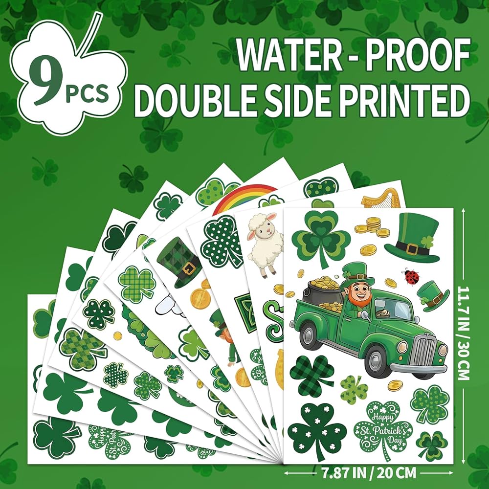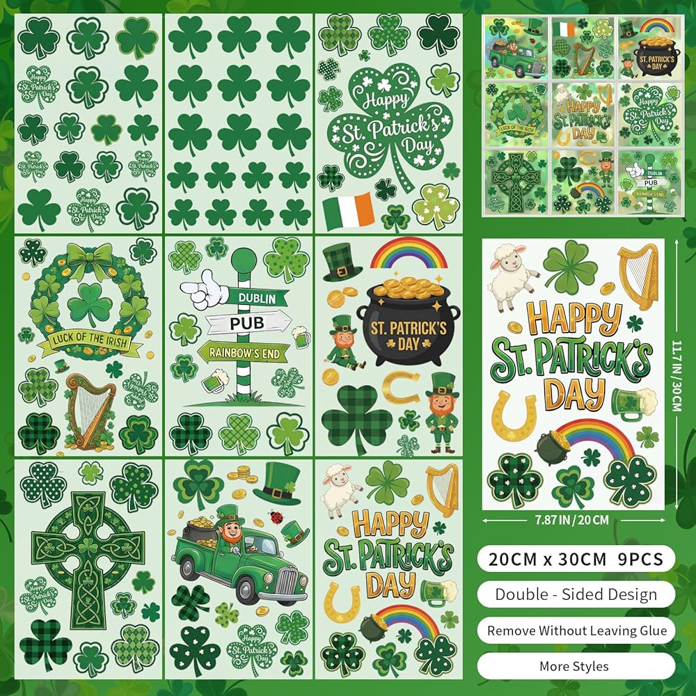 9-Sheet Diverse Pack:You receive 9 unique cling sheets with distinct themed designs, from shamrock clusters to leprechaun-rainbow scenes. This abundant variety supports mix-and-match styling, allowing you to create personalized decor layouts for subtle home accents or bold shop window displays during the Irish festival season.