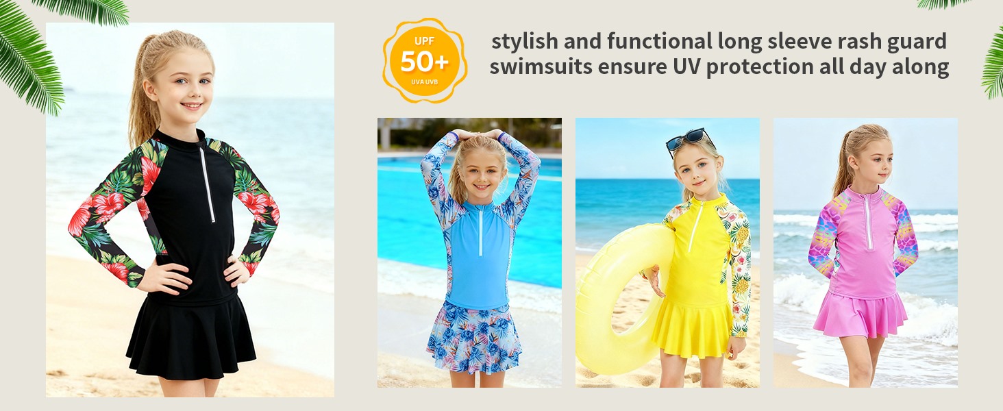 Material: Girls rashguard swimsuit made of lightweight and breathable fabric. The soft and stretchy kids swimsuit offer relax, comfort and uv protect while you have fun in the sun