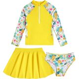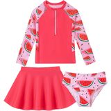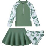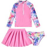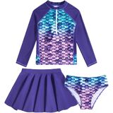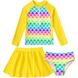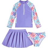 Design: Girls 3 pieces swimsuit set include long sleeve rash guard shirt + bikini bottom + skirt, zipper design make it easy to wear and take off.. Vivid digital print will not fade