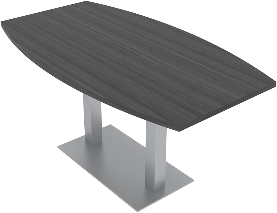 6-Person Boat Shaped Conference Table | Harmony Series Office Table with Brushed Silver Square Metal Base | Meeting Tables for Offices, Training Rooms, and Homes | Asian Night – 5’
