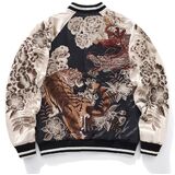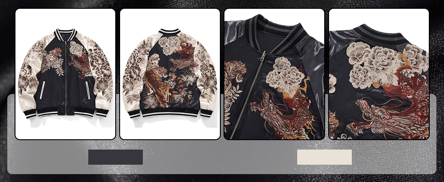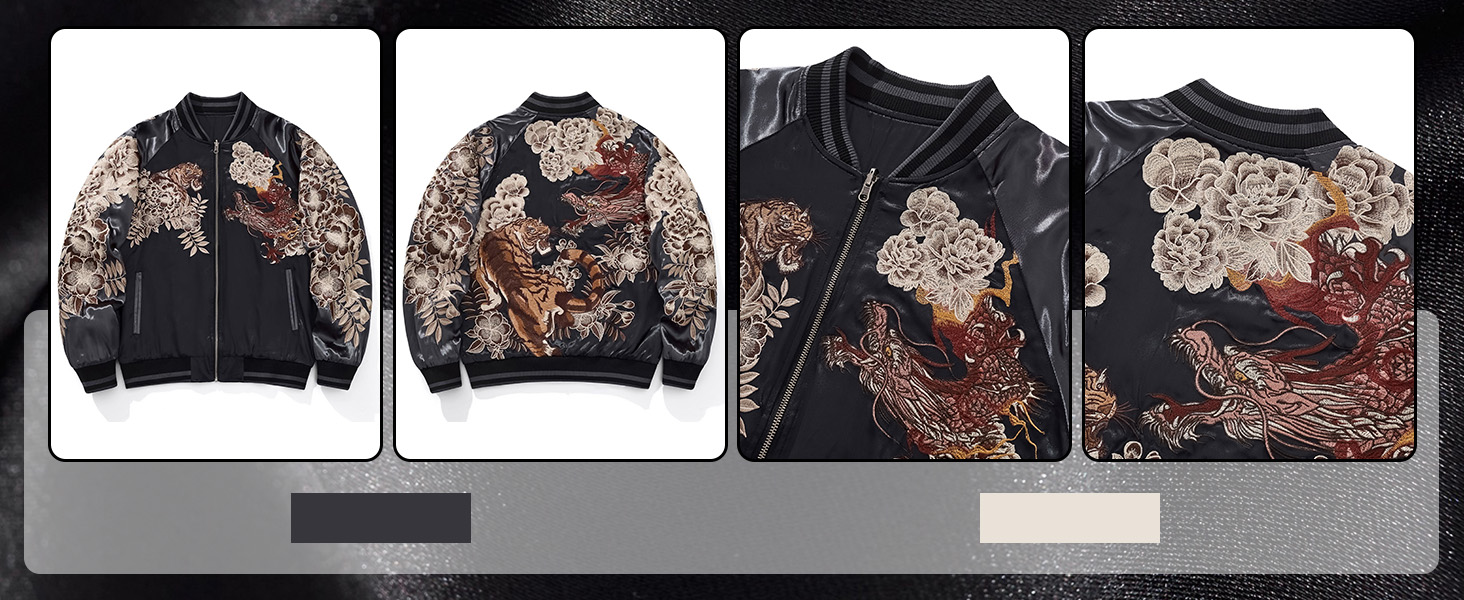 Exquisite Embroidery Design: Dragon,tiger and floral heavy embroidery blends Japanese tradition with American vintage style. The clash of dragon and tiger embodies both the confrontation and equilibrium of power, while subtly reflecting the Eastern philosophy of yin-yang harmony. The peony, symbolizing wealth and prosperity, contrasts with the fierce vigor of dragon and tiger, adding auspiciousness and refinement to highlight the layers and charm of Eastern aesthetics