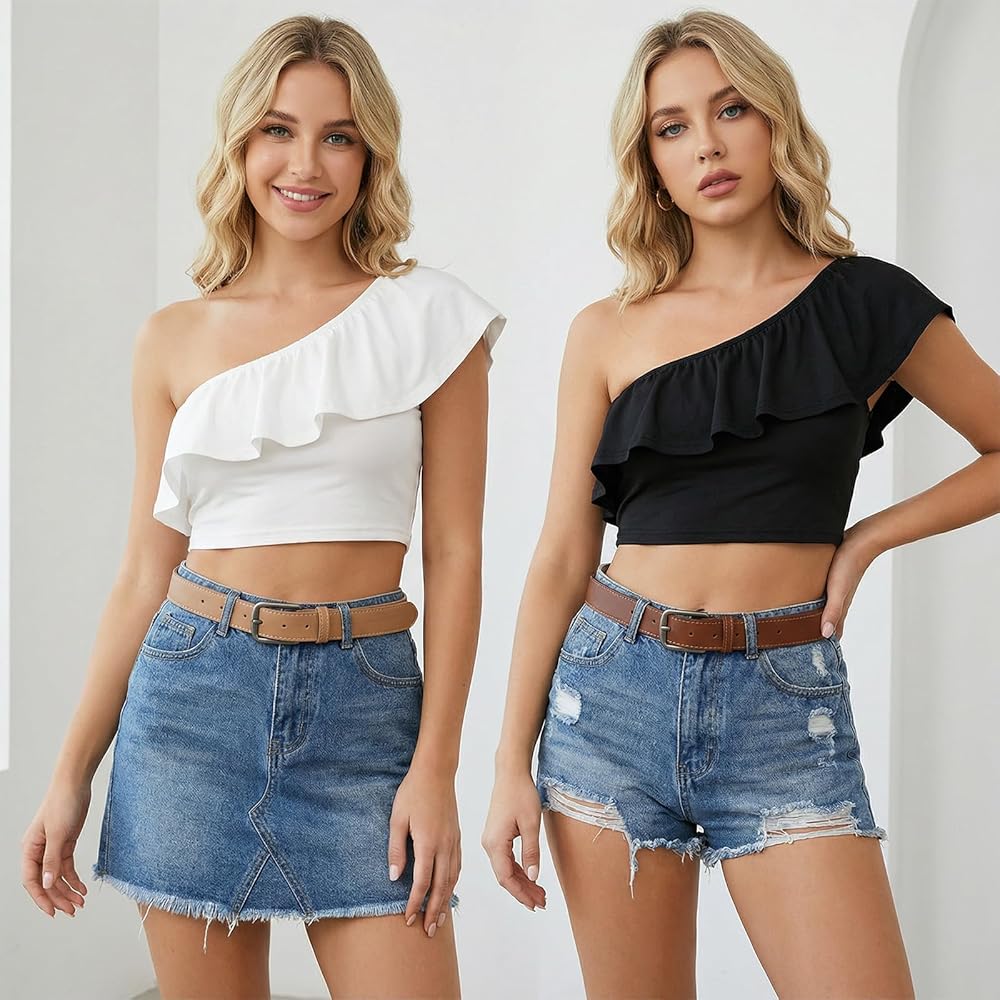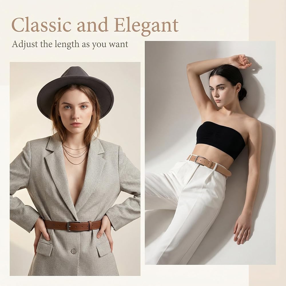 This women's thin belt is made of soft faux leather, making it both durable and comfortable, with an excellent wearing experience. The smooth texture of the leather enhances the overall elegance and quality of the belt.
