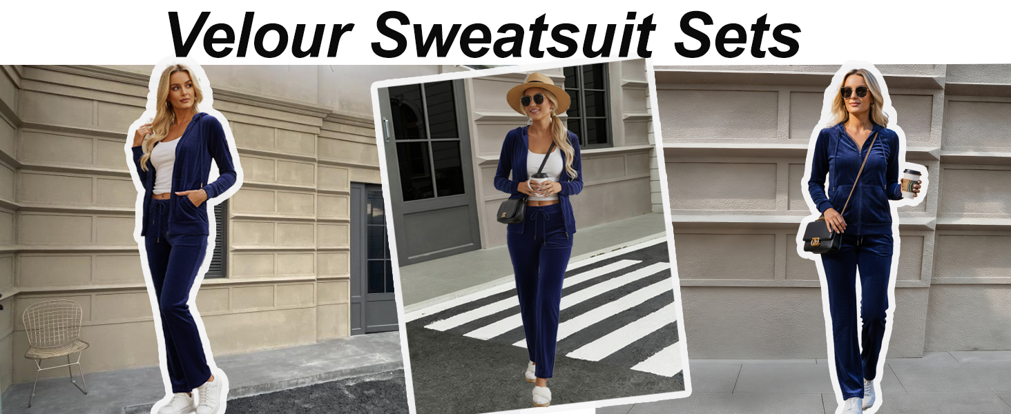 【ALL-SEASON STYLE - MIX AND MATCH 2 PIECE OUTFIT】 This velour set provides comfortable warmth for spring, autumn, and winter wear. The coordinated hoodie and pants are designed for travel, morning walks, and home lounging, offering practical function across various seasonal environments