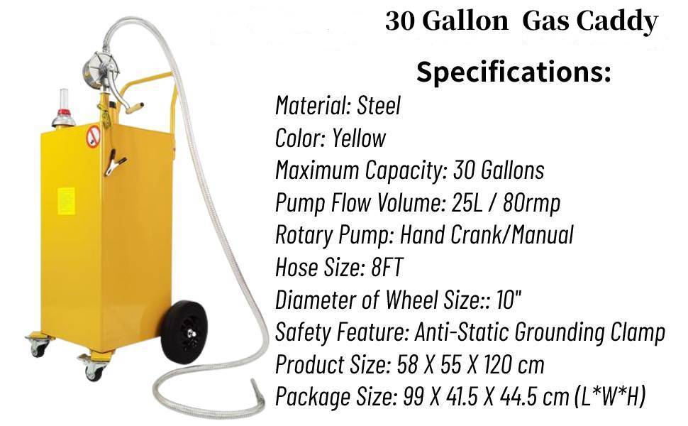 Large Capacity: Large capacity of 30 gallon fuel transfer tank is easy to store, to transfer various kinds of fuel like diesel oil, engine oil(not gasoline). Size-Pump Flow Volume: 25L / 80rmp