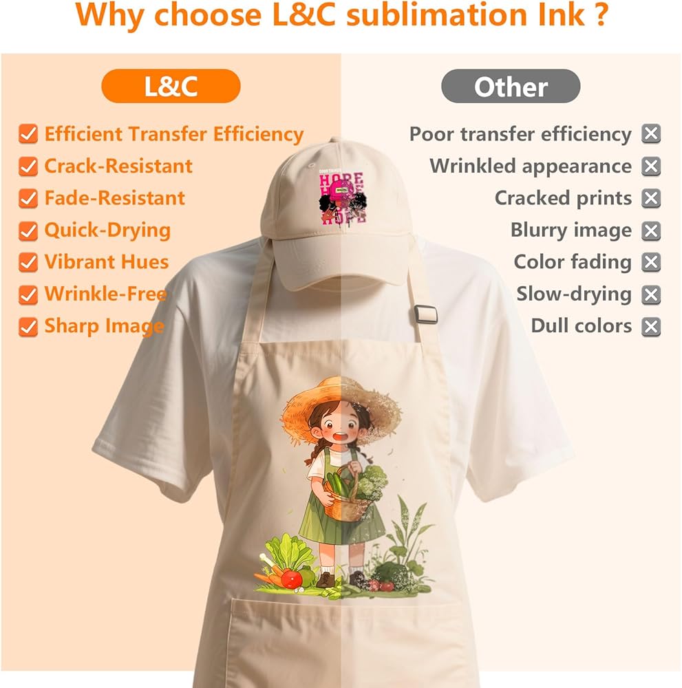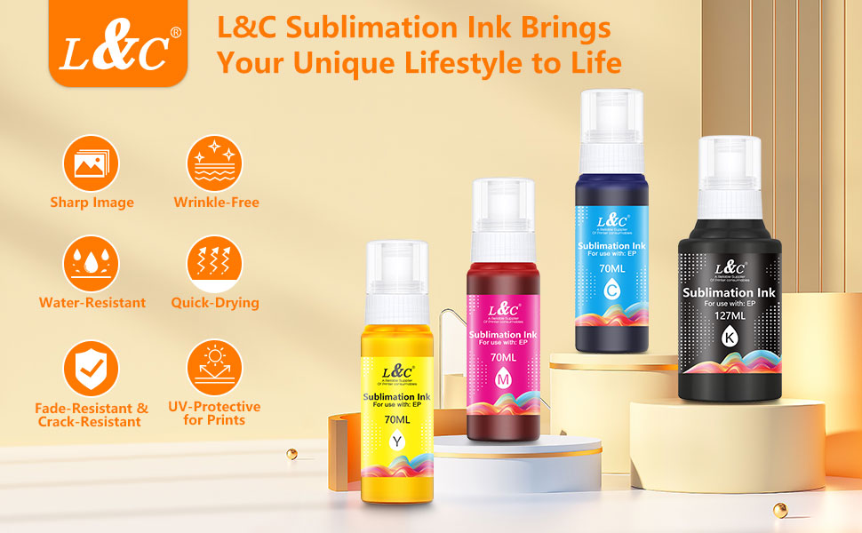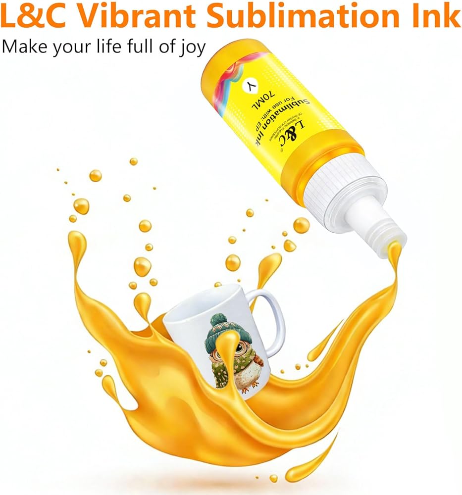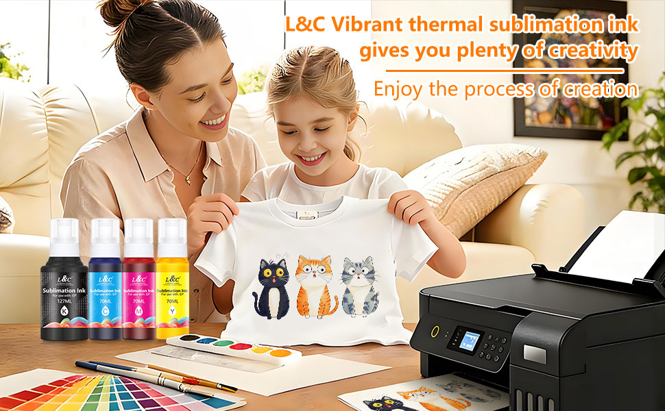 Endless DIY Possibilities for Every Occasion – Our Sublimation Ink, premium sublimation ink for epson, is perfect for heat press transfer projects! Use it on t-shirts, ceramic mugs, pillowcases, phone cases, canvas bags, mouse pads, shoes, caps, quilts, decorative cloth, flags, banners and more. Whether you're making personalized gifts for family/friends, creating custom merch for your small business, or crafting home decor, this ink turns your ideas into reality. Note: Ideal for fabrics with less than 30% cotton content for best transfer effect.