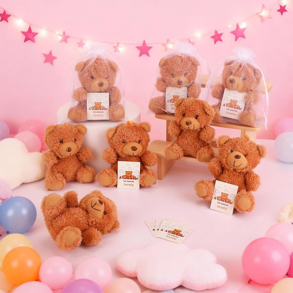 • Ready to Gift Bear Sets: including 12 mini plush bears, 12 organza bags, and 12 greeting cards, in total 12 complete brown smile bear gift sets, so you can hand them out straight away as birthday gifts or party favors without extra packing work; Please note that the plush bears are vacuum packaged, so they may arrive slightly compressed or a bit 'wonky', After opening, gently shake/knead and fluff each bear, then let them rest for 24 hours to fully regain their shape