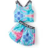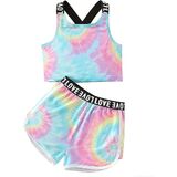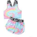 Stylish 2-Piece Outfit with Distinctive Details:This kid girl 2-piece summer set includes a letter print crop tank top and contrast binding track shorts, available in vibrant tie-dye and classic camouflage patterns. The "LOVE" letter tape decorates the tank top's straps and shorts' waistband, adding a cute, on-trend touch that makes your little one stand out.