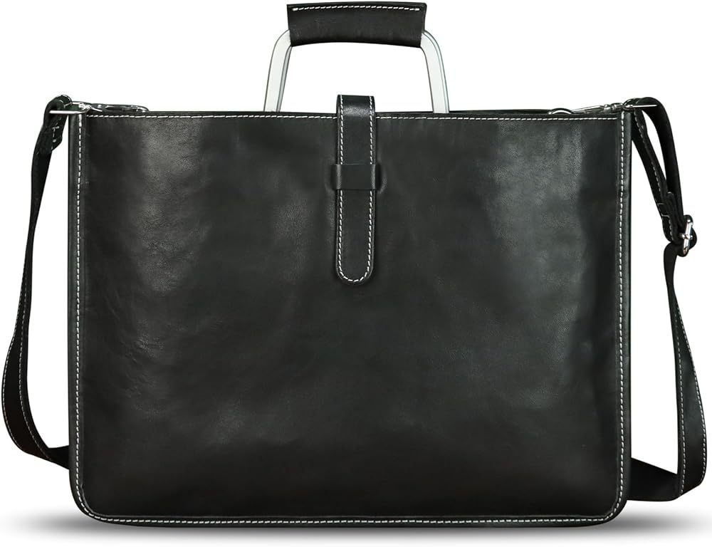 Genuine Leather Slim Briefcase for Men and Women Vintage Crossbody Shoulder Messenger Bag for Business Laptop