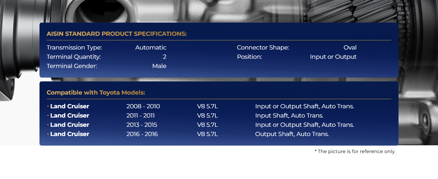 [About AISIN] - Leveraging AISIN's legacy as an automotive leader since 1965, our Speed Sensors are engineered to the exacting standards of global manufacturers, providing robust, seamless operation and dependable long-term performance