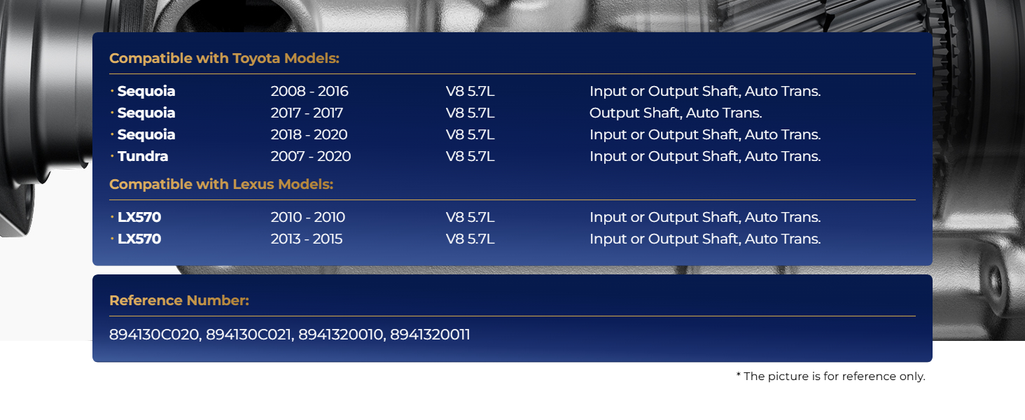 [Compatibility] - Compatible with Toyota Tundra 07-20, Sequoia 08-20, Land Cruiser 08-16, Lexus LX570 10-15 - with Automatic Transmission (AT)