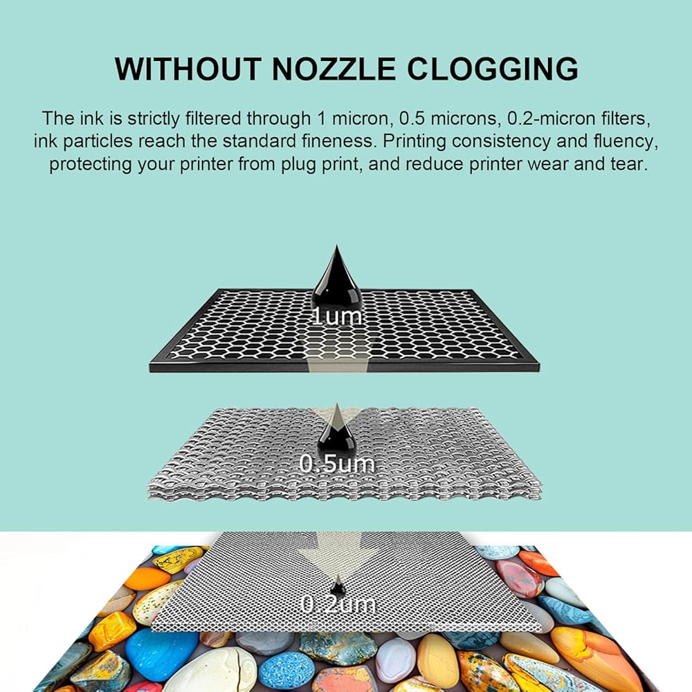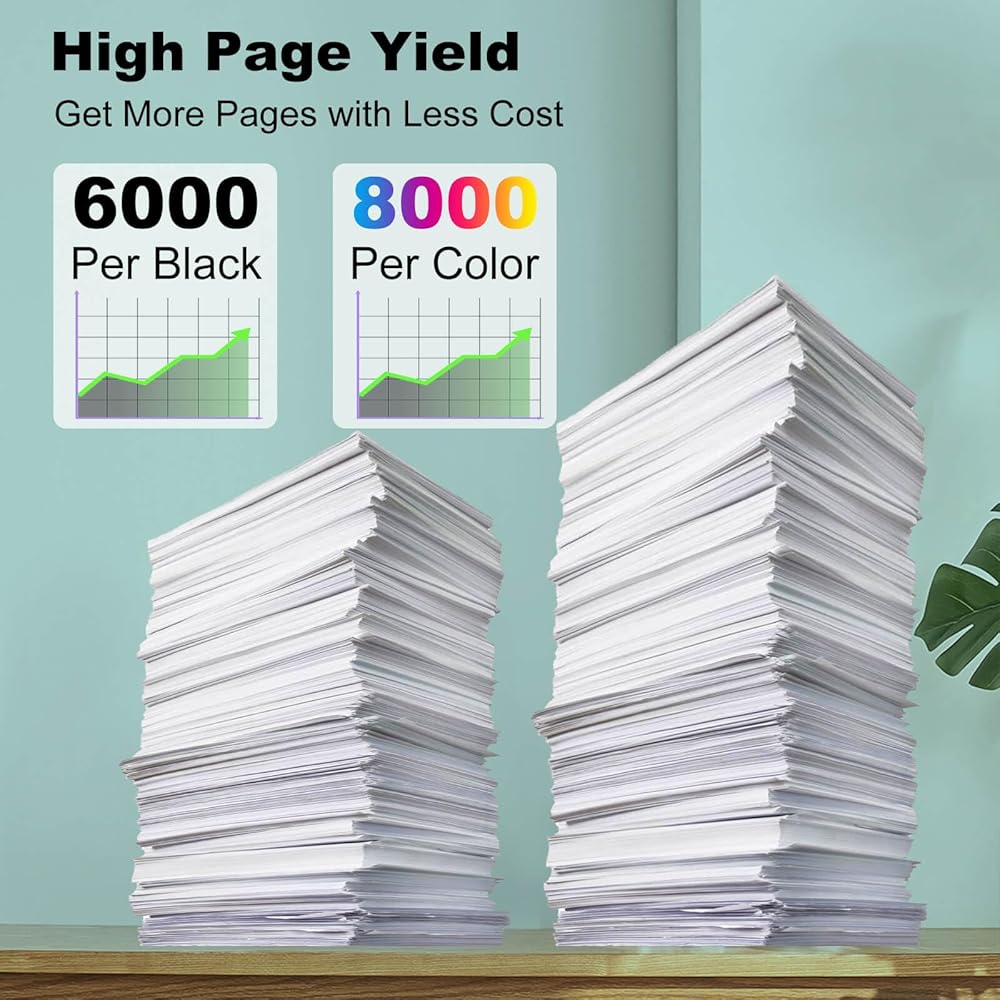 Large Capacity: Each black ink bottle contains 135ml of ink, providing enough ink to print up to 8000 pages. Each color ink bottle (cyan, magenta, yellow) contains 70ml, enough to print up to 6000 pages. This high-capacity ink set is perfect for high-volume printing tasks.