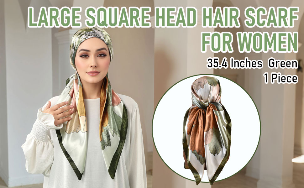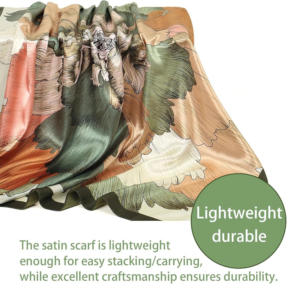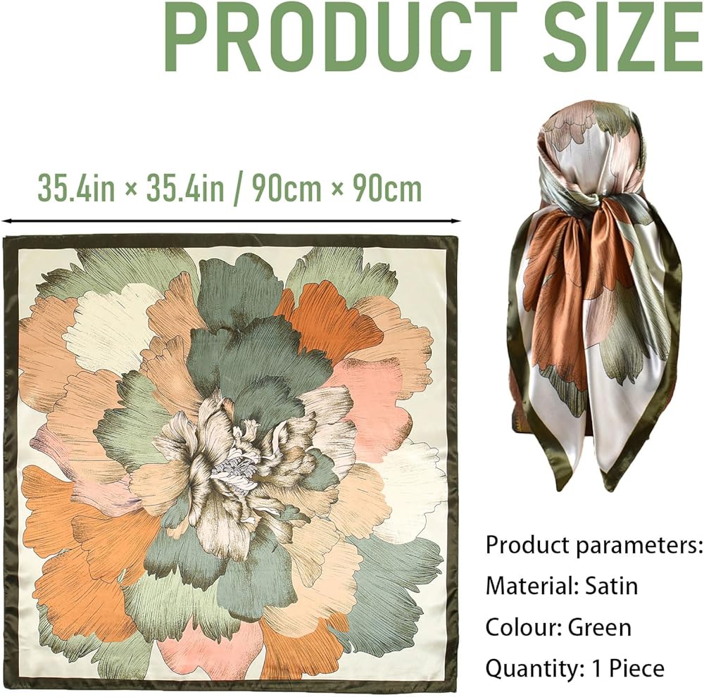 Hikiwin This 35.4in square satin headscarf has a bold floral design, soft, durable craftsmanship, versatile styling, suiting daily, concert, or party use.