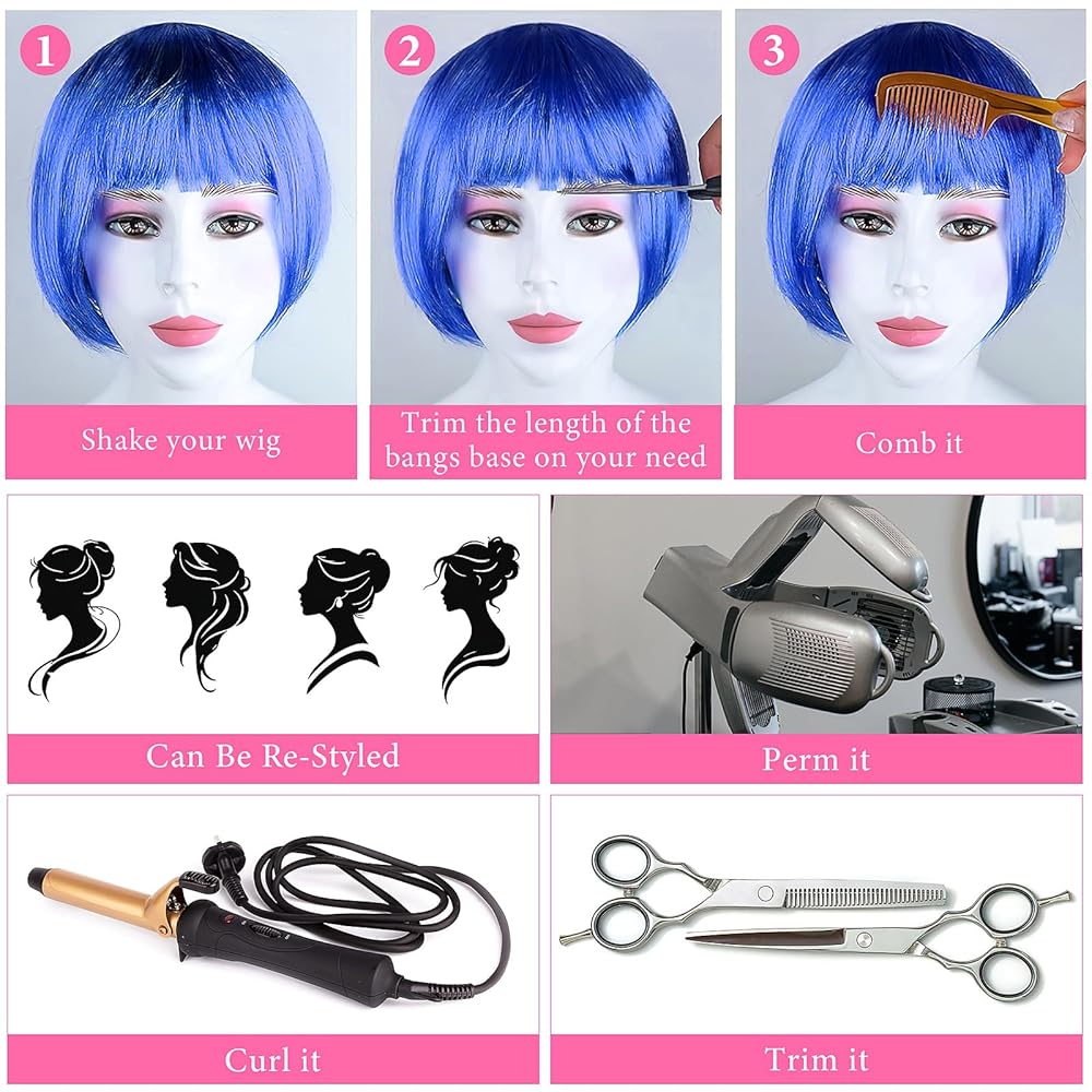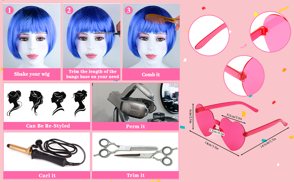 One Size Fits Most: The party wigs are designed to fit most head sizes comfortably. You can trim the bangs or ends to suit your face shape. For best results, hold the party wig at the roots with one hand and gently comb. Avoid pulling or tearing the fibers to keep the wig in good condition.