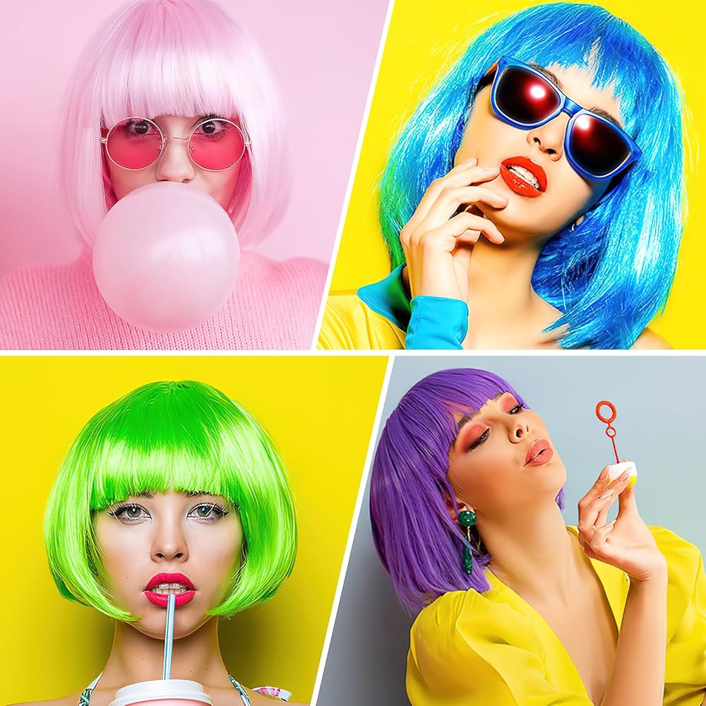 Perfect for Any Fun Occasion: These colorful short bob wigs are ideal for Halloween, birthday parties, bachelorette parties, music festivals, cosplay events, carnivals, New Year's Eve, Pride parades, and more. Their vibrant colors and playful style instantly add energy to any celebration, making them a hit for both themed events and holiday gatherings.