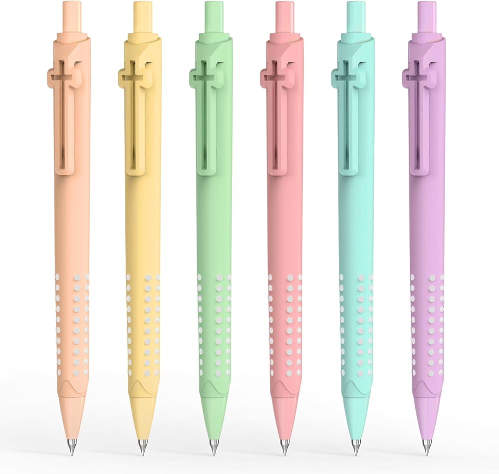 6 Pack Bible Journaling Gel Pens, 0.7mm Black Ink Retractable with Cross Clip,Smooth Writing, Christian Gifts for Men Women, Religious School & Office Supplies (Macaron)