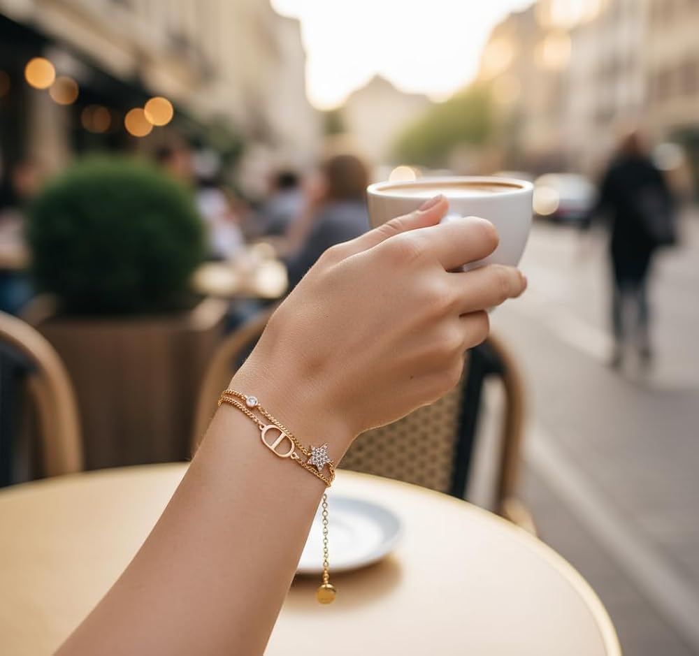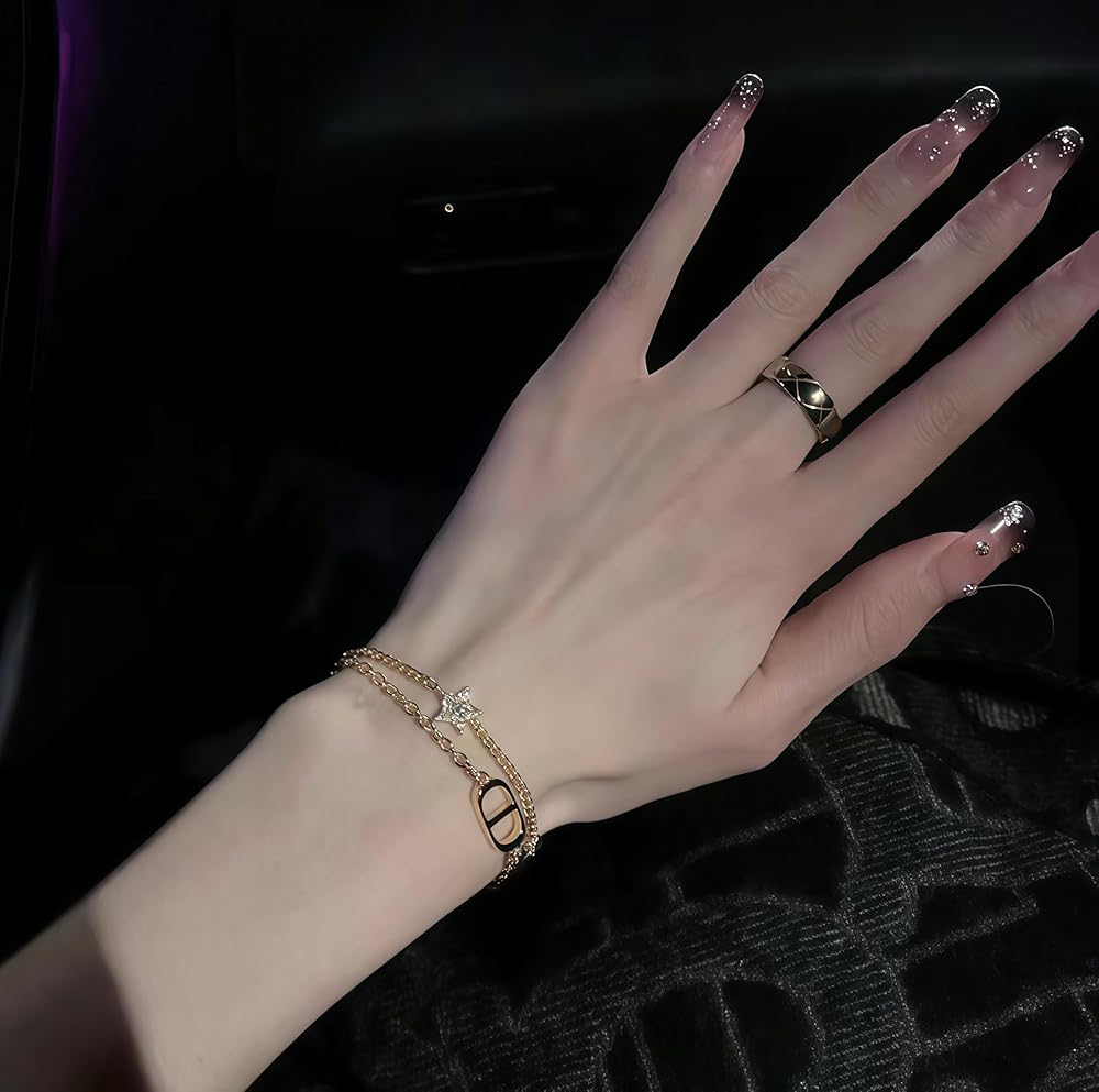 Elevate your jewelry collection with this exquisite gold-plated chain necklace. The multi-strand design creates a sophisticated layered effect that adds dimension and visual interest to any outfit. The delicate crystal-embellished star pendant serves as a stunning focal point, while the signature emblem adds a touch of luxury. This versatile piece features a secure clasp closure and can be dressed up or down for various occasions. The intricate chainwork showcases superior craftsmanship, making it a timeless addition to your accessories. Perfect for special events or adding glamour to everyday wear, this necklace combines contemporary style with classic elegance. The gleaming gold-plated finish ensures lasting beauty, while the carefully set crystals catch and reflect light for added sparkle. This statement piece works beautifully with both evening wear and casual ensembles, making it a versatile choice for the fashion-conscious woman.
