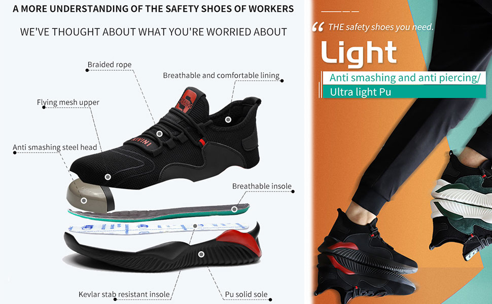 Special solid PU outsole + Kevlar midsole to prevent being punctured, and the midsole ensures great flexibility for your feet.