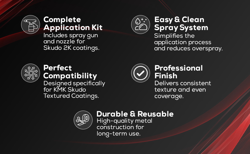 - Compatible with Skudo Coatings: Perfect for use with KMK Skudo Black and Tintable 2K Protective Coatings.