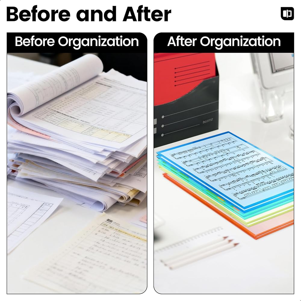 TRANSPARENT & VISIBLE - The fully transparent design allows you to quickly view contents without opening the folder and the vibrant colors make it easy to sort and organize, improving efficiency.