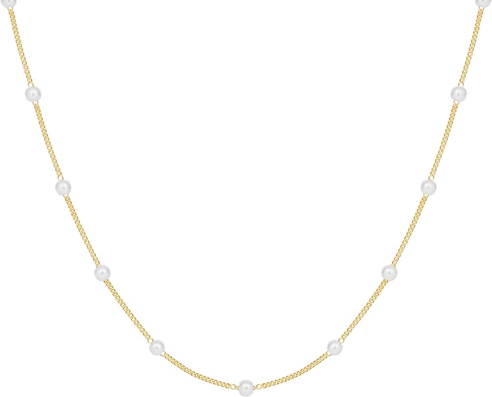 Pearl Necklaces for Women Trendy, Dainty 14K Gold Silver Plated Cross Pendant Pearl Choker Necklace for Women Adjustable Non Tarnish Beaded Chain Christmas Wedding Faith Jewelry Gifts