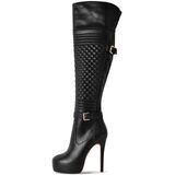 - Over the Knee,Sleek thigh-high boots with quilted detail and buckle accents for dressing up any outfit.
