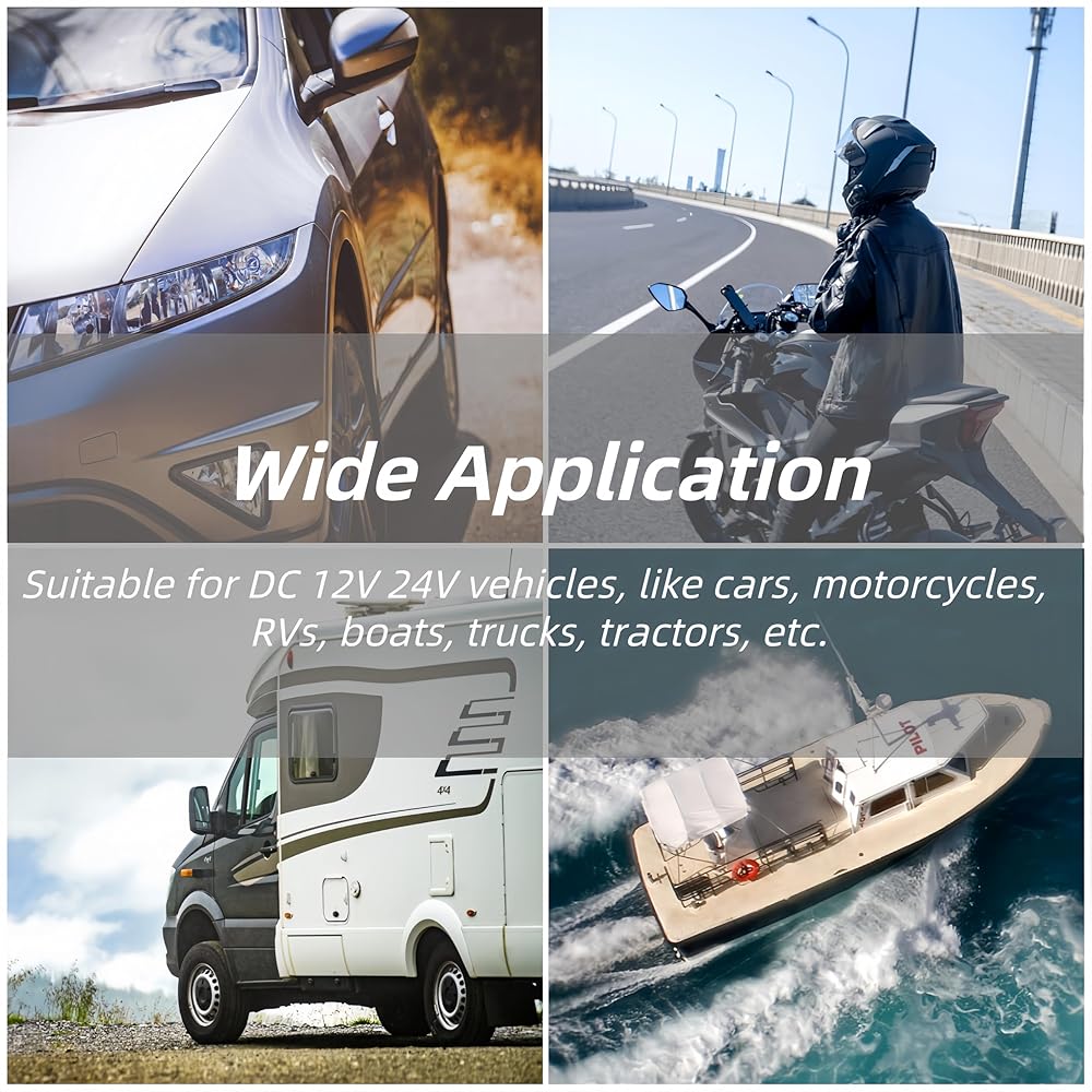 Voltage Tester is widely applicable to DC 12V 24V vehicles, like cars, motorcycles, RVs, boats, trucks, tractors, etc.