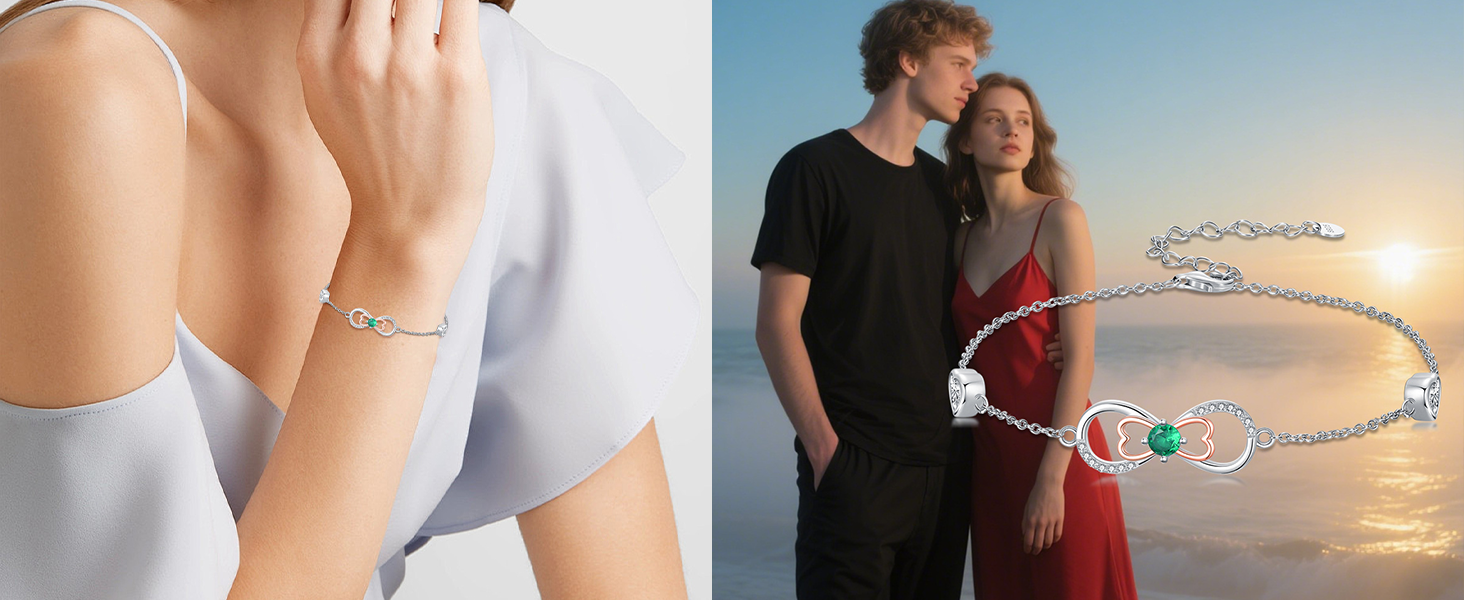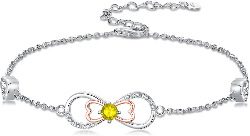 Unique Design: Infinity Birthstone Charm Link Bracelet,meaning eternal love encircled by birthstone light