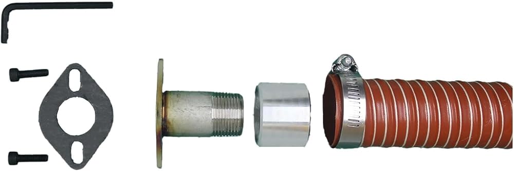 Predator 2500 Generator Ducar Screen 22-002 Spark Arrestor flange exhaust extension allows for safe venting of exhaust fumes from an unoccupied enclosed area. This is designed for units that have two-hole spark arrester cover plate Ducar Screen 22-002. To verify this is the correct kit, please ensure the screen cover has ‘Ducar Screen 22-002' stamped on it. The buyer will receive: a custom low-profile stainless-steel exhaust stub with a male 3/4" NPT thread, 3/4" NPT to 1-1/2" adapter, longer replacement screws, and a high temperature gasket, and the specified length of 1-1/2 I.D. flexible high temperature silicone lined exhaust tubing, and the proper size lined hose clamp. The exhaust stub will need to be bolted onto the generator's stock muffler. Installation instructions will be provided.