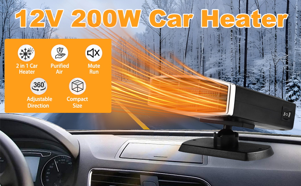 【2 in 1 Heating & Cooling】This portable car heater as both a heater and cooling fan.Use it in the winter months to clear ice and fog,or switch it to cooling mode in summer for enhanced air circulation and ventilation