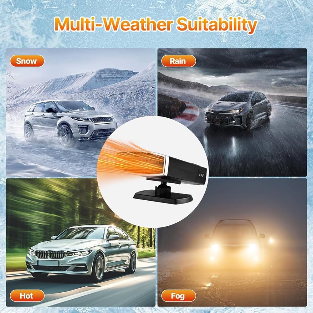 【Fast Heating for Quick Defrosting】 Our portable car heater is designed to provide rapid heat to defrost your windshield in minutes.Its powerful airflow helps clear frost and fog quickly,ensuring a safe driving experience