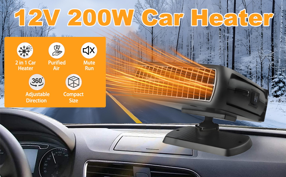 【High Power & Fast Heating】 Our 12V car heater adopts antioxidant alloy wire, 200W high power fast heating, effectively removes frost and water mist on the windshield, providing you with a clear view of the road, while increasing the temperature inside the car, so you can enjoy a safe and warm drive in the cold winter