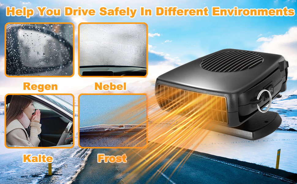 【Widely Compatible】This vehicle heater is suitable for all 12 volt vehicles, widely used in sedans, cabs, SUV, light trucks, jeeps, vans and more. The car warmer is perfect as a gift for your family or friends to make their driving safer and more comfortable
