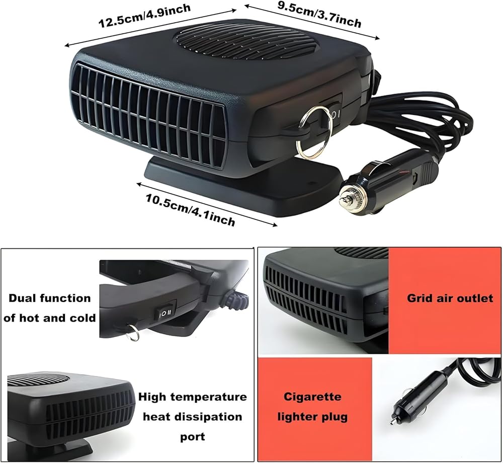 【Cold and Warm Dual Use】Our car heater portable is available all year round.This 12v heater is not only ideal for demisting/defrosting windscreens.but it can also be used as a cooling fan in summer