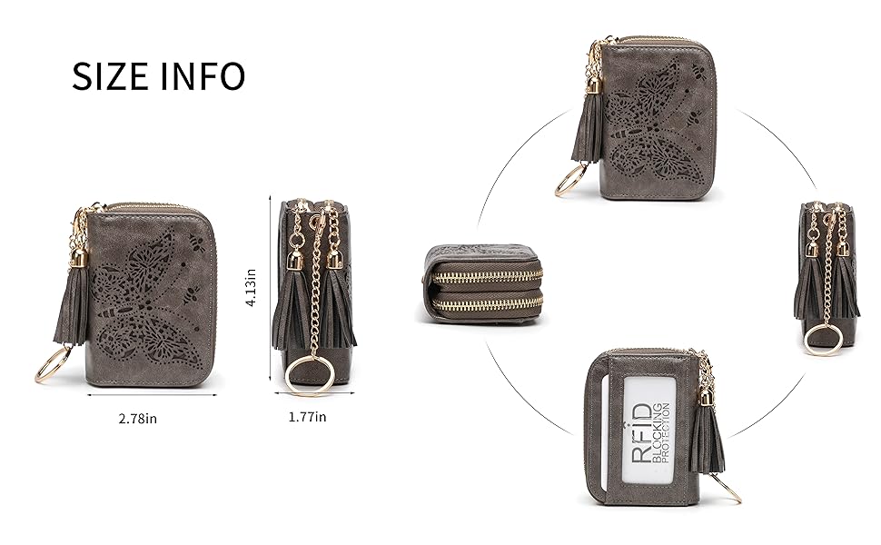 Stylish & Premium PU Leather Credit Card Wallet-This card holder features a soft PU leather construction that is animal-friendly, glossy, and highly tear-resistant. It showcases a unique hollow-out butterfly design and includes a removable key ring, making it both elegant and practical for work, travel, dating, shopping, and more.