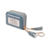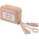 Double-zip Multi-slot Card Case-Measuring 2.76in x 4.13in x 1.77in and weighing 0.15KG (0.33LB), this card case offers 10 accordion-style card slots, 4 folded cash slots, 4 mini coin pockets, 1 mini zipper pocket, and 1 transparent frosted touch ID window on the back. It is spacious and keeps your credit cards, business cards, coins, bills, ID cards, and small items well-organized.