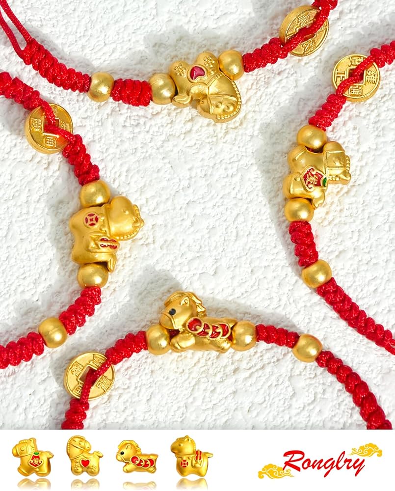 Ronglry Chinese New Year of The Horse 2026 Red String Bracelets Chinese Zodiac Bracelet Horse Charms Handmade Braid Rope Bracelets Good Luck Bracelet for Women Men