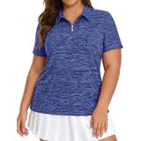 Flattering Plus Size Fit with Functional Design: Featuring a classic polo collar and a convenient quarter-zip placket for adjustable ventilation, this shirt is tailored to fit plus size bodies (sizes up to 3X) comfortably and flatteringly. The relaxed, non-binding cut hugs your curves without clinging, boosting your confidence on and off the course