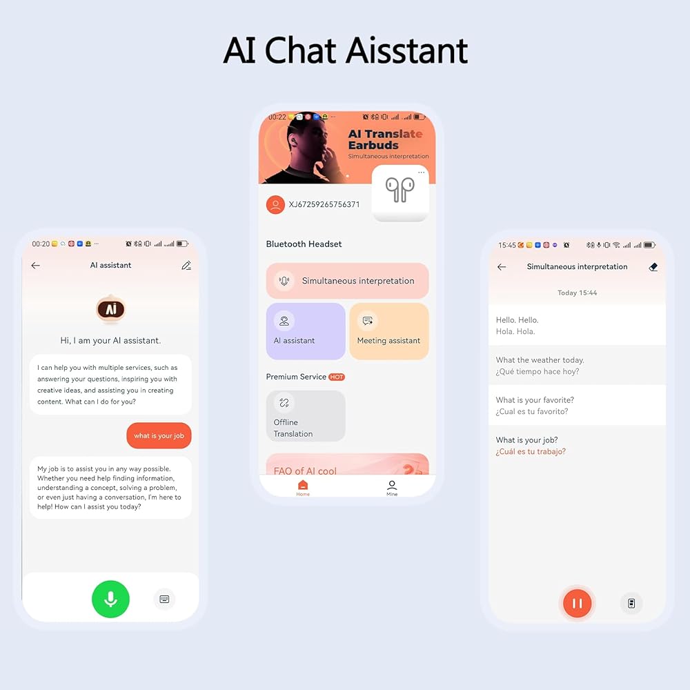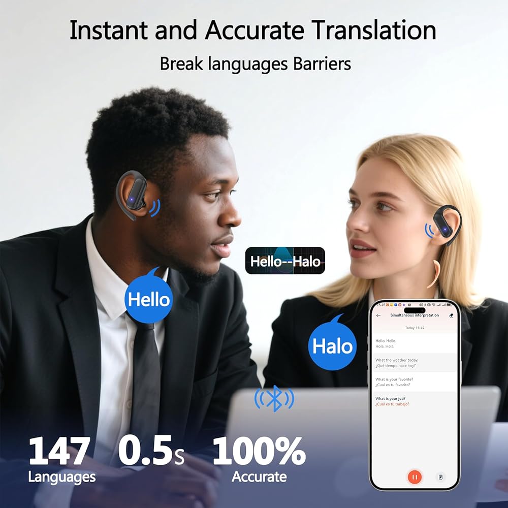 Speak 147 Languages Fluently: Conquer language barriers instantly! Powered by cutting-edge AI, our earbuds deliver real-time, accurate two-way translation across 147 essential global languages, including English, Spanish, French, German, Mandarin, Japanese, and more. Perfect for international business negotiations, navigating foreign travel, immersive language learning, or handling unexpected situations abroad – communicate with confidence, anywhere. Your Intelligent AI Chat Companion: Go beyond translation with your always-available knowledge partner. Our integrated AI Chat Mode provides instant answers to your questions, offers insightful tips, helps you practice new languages, and acts as your personal assistant on the go. Ideal for students researching, travelers seeking local knowledge, or professionals needing quick facts during a busy day. Meeting Minutes Genius: Your Unique Advantage! Instantly capture, transcribe, and summarize crucial discussions, action items, and decisions – transforming meetings into actionable results. Essential for professionals, conferences, and interviews. 5-in-1 Multifunctional Powerhouse: Simplify Your Tech Life: Why carry multiple gadgets? Our ingenious design brilliantly combines Real-Time Translation, AI-Powered Meeting Minutes, Smart AI Chat, High-Fidelity Phone Calls, and Immersive Music Playback in one compact pair of earbuds. Seamlessly switch from closing a crucial translated deal to taking meeting notes, then unwind with your favorite playlist Long-Lasting Power & Rich, Punchy Bass: Engineered for endurance. Enjoy up to 48 hours of total battery life with the compact charging case – powering through extended work trips, multi-day conferences, or long study sessions without hunting for an outlet. Experience exceptional audio quality: deep, punchy bass and crystal-clear sound whether you're translating, on calls, listening to music, or reviewing your meeting notes. Premium sound meets all-day reliability.